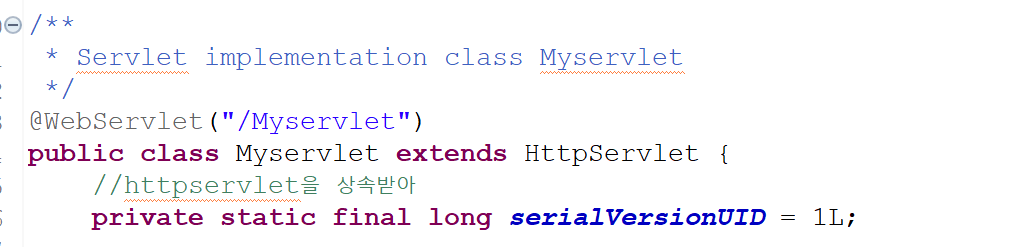 실제로 이클립스에 Myservlet 이 httpServlet 을 상속 받아 이루어 진것을 알 수 있다.