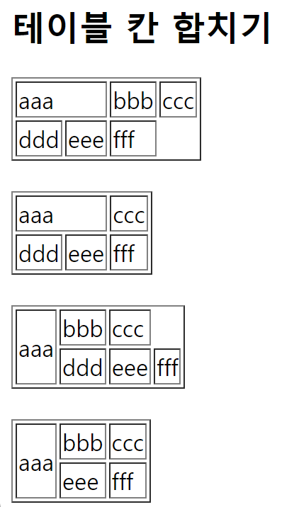 colspan : column 을 기준으로 테이블 칸을 합친다