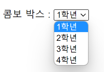 콤보 박스는 목록을 드롭다운으로 보여주는 것으로 <select> 를 사용 한다.