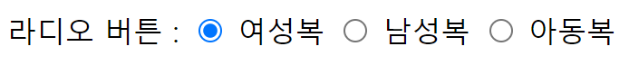 라디오 버튼 : <input type ="radio" name = "ra" value = "f" checked > 여성복