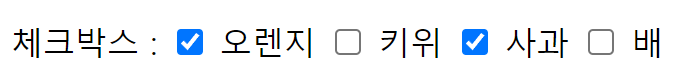 <input type = "checkbox" name = "ch" value = "3" > 사과