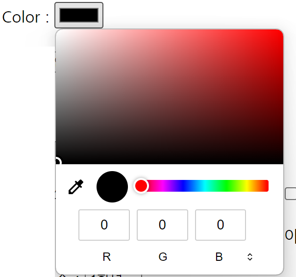 컬러 박스는 컬러를 선택 할 수 있는 박스가 생성 된다. type 은 color 로 지정해준다.