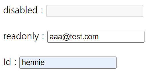 readonly : <input type = "text" name = "email" value= "aaa@test.com" readonly><br/>