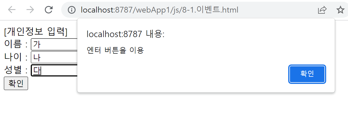 if (event.keyCode == 13) { //jquery에서 배울 내용이당. 키코드 13은 엔터를 뜻함