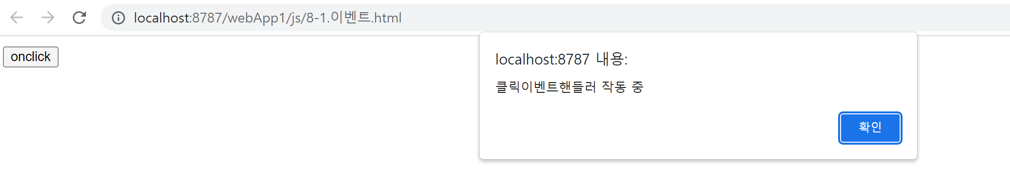 alert("클릭이벤트핸들러 작동 중 ")