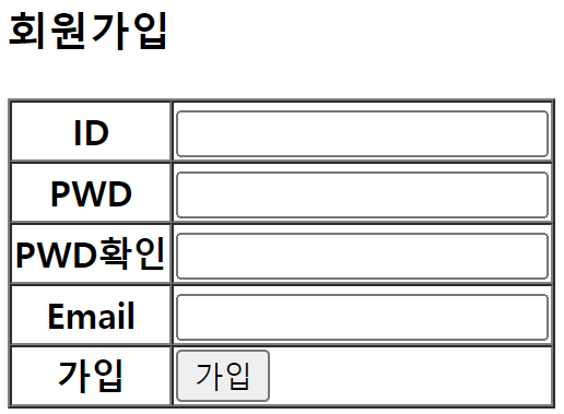 ① 테이블 형식으로 깔끔하게 회원가입 틀을 만들어 주었다.