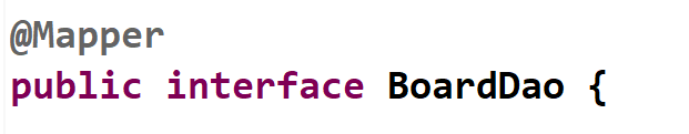 MyBatis를 이용하여 dao를 만들 때에는 public class 가 아닌 public interface 를 이용하여 만들어 준다.