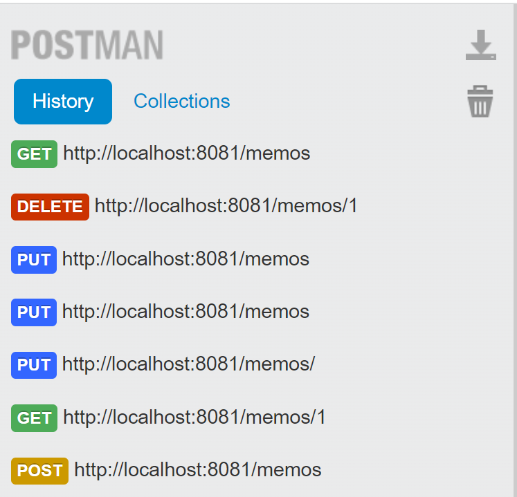 Postman의 URL 주소창에 어떤 방식으로 작성해야 원하는 결과를 볼 수 있을까? 하기 표의 규칙과 HTTP Method 방법을 선택해서 Send 해주면 된다. 기록을 통해 이전에 작성 한 것도 다시 불러 올 수 있으니 아주 간편하다