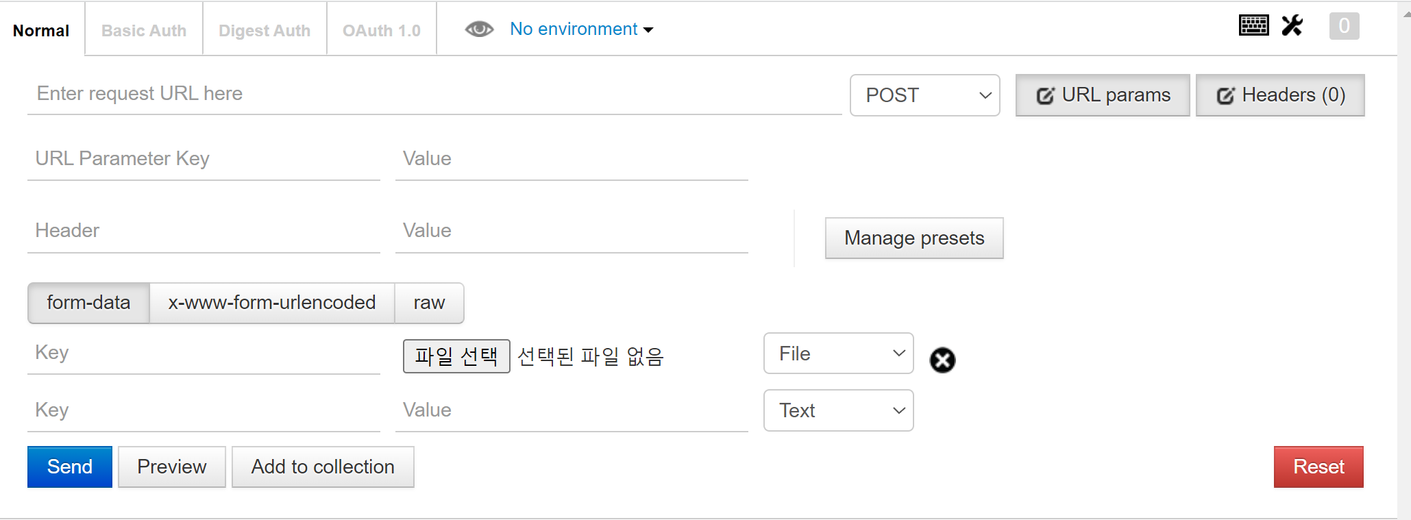 POST 방식에서 form-data를 파일로 선택하면 파일로도 값을 넣을 수 있고 URL 파람과 헤더까지 간편하게 넣을 수 있어 코드 실행이 조금 더 유연해 진 것 같다.