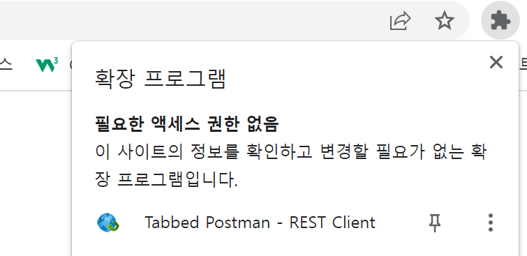 4. 크롬브라우저 우측에 있는 퍼즐모양을 클릭한 후 postman 클릭하면 실행 된다.