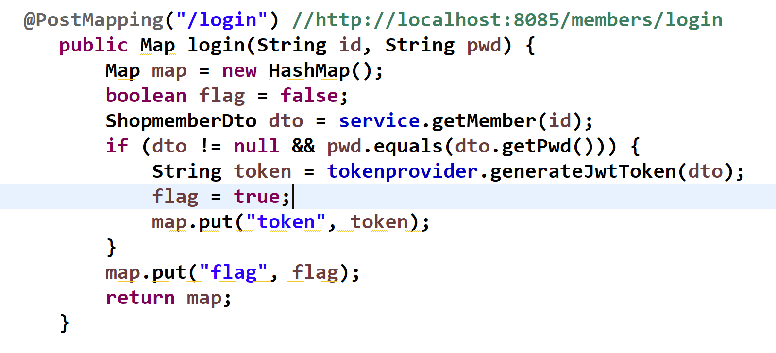 url 은 http://localhost:8085/members/login 이며 Spring이 해당 url과 method 에 맞는 내용을 controller에서 찾는다.