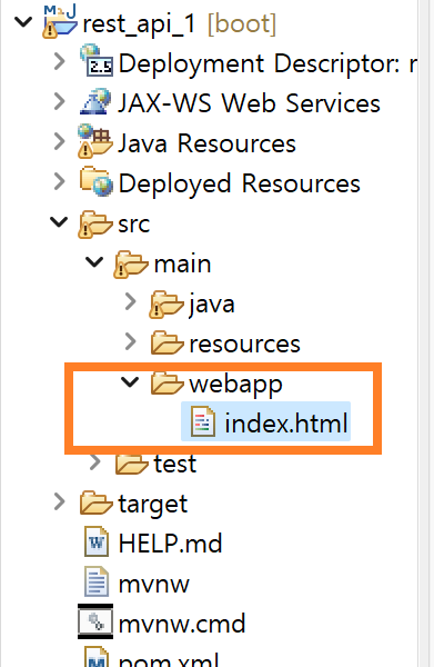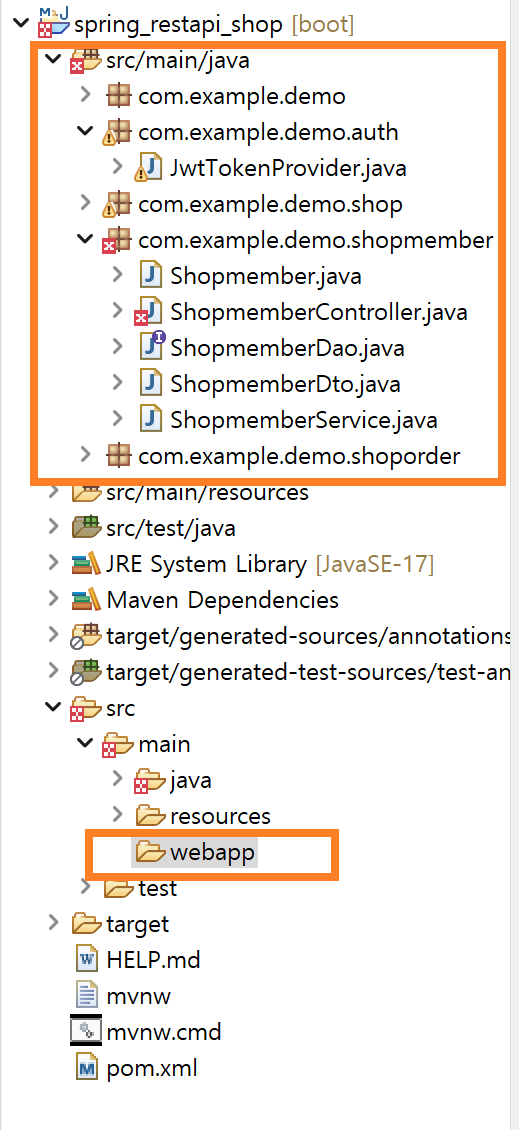 예시로 이전까지의 프로젝트들에는 front를 구성하는 webapp에 JSP 파일이 있지만 완벽하게 분리 된 Spring은 webapp에 아무 파일도 없는 것을 볼 수 있다.