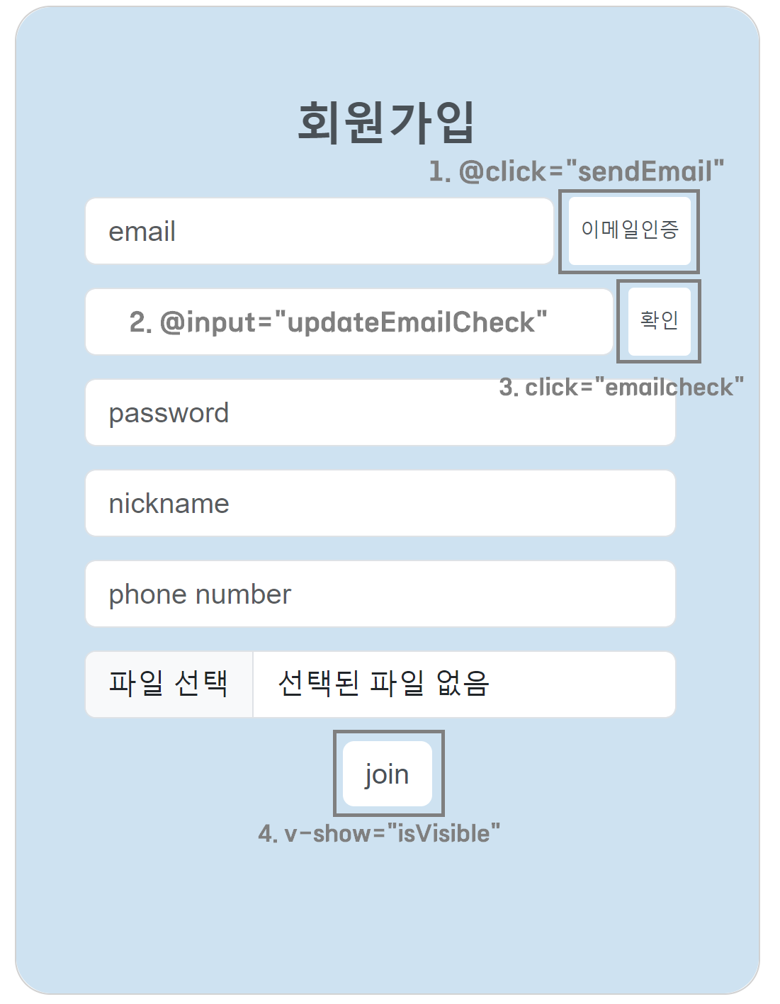 v-on:click="sendEmail">이메일인증</button>