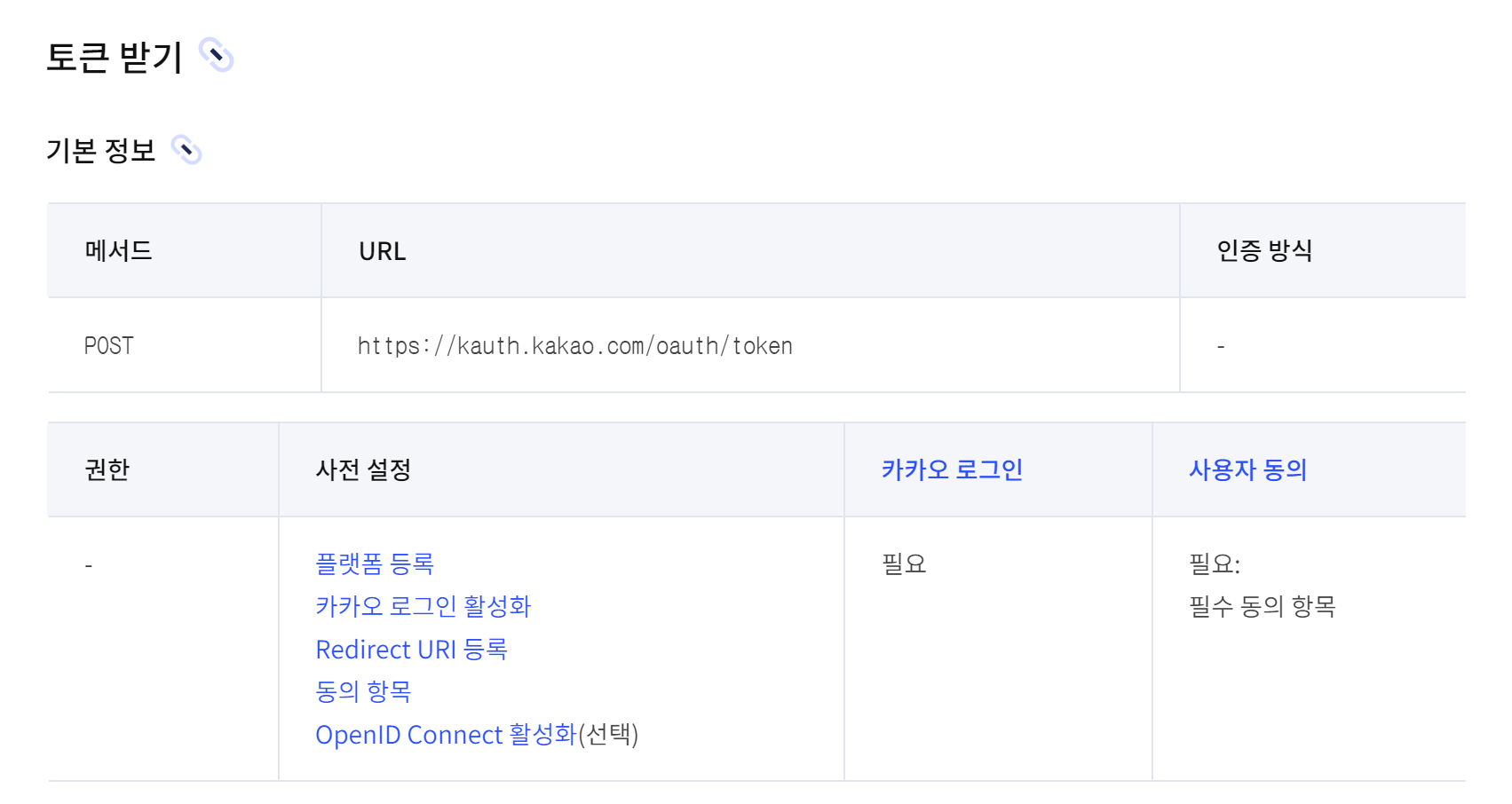 카카오톡 디벨로퍼스에 가보면 이렇게 토큰을 받는 방법이 나와 있다. 기본정보에 보면 POST 로 해당 URL에 보내라고 나와 있다. 그렇다면 나도 그렇게 서버 쪽에서 짜줘야겠지?