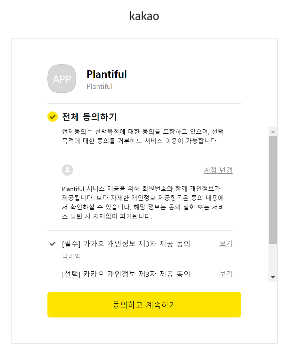 선택한 동의 항목들이 이렇게 로그인 후 해당 웹사이트에 가입 할 때 나타난다.