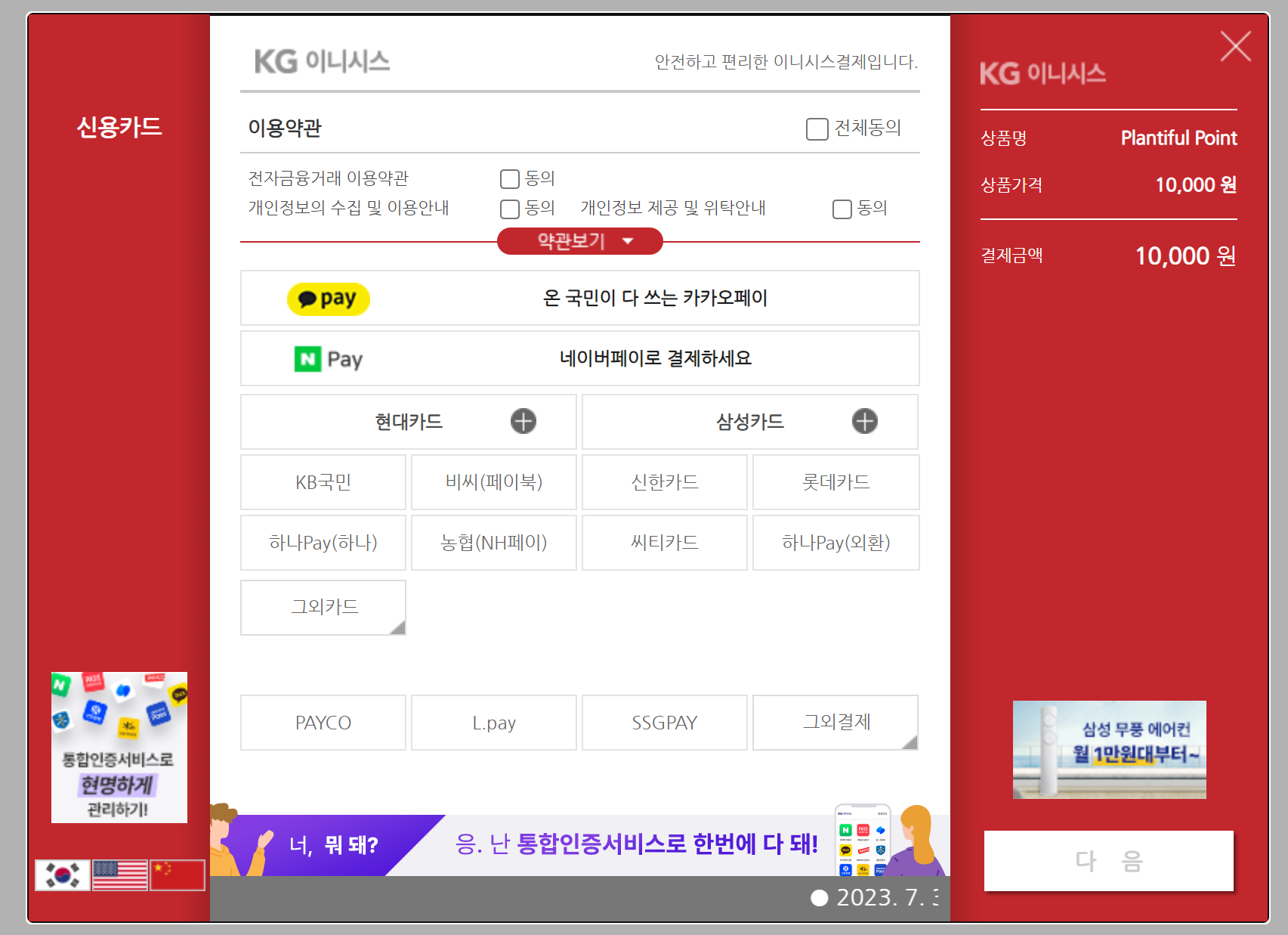 | [Rest Api] 아임포트를 이용한 KG이니시스 결제 구현하기 (feat. vue.js) - (2) (1) | 2023.07.16 |