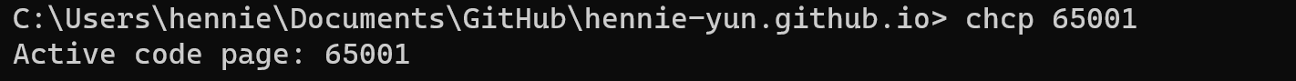 보통 파일명이 영어인데 한글로 되어 있는 경우도 있으니 아래의 인코딩 명령어를 실행 해준다. 65001이라면 인코딩에 성공한 것이다.