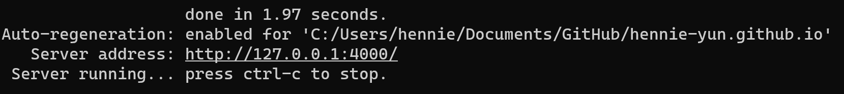 정상적으로 실행되었다면 http://127.0.0.1:4000/ 또는 http://localhost:4000/ 로 접속이 가능하다. 아가 index에서 만들어 놓은 파일이 보이는 것을 확인할 수 있다.