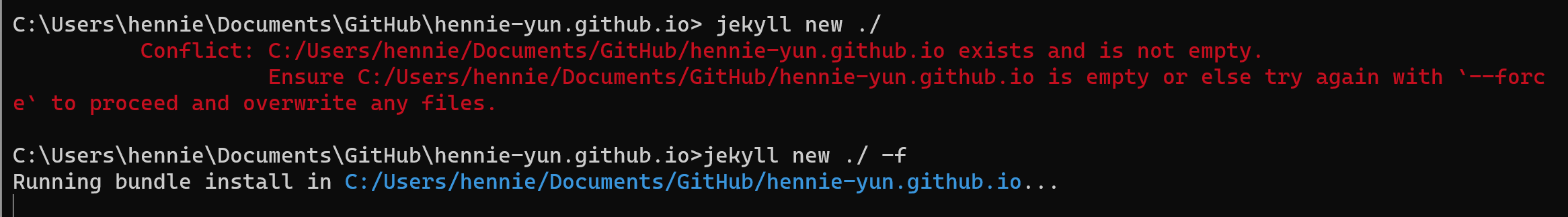 충돌이 발생 했다면 아래의 명령어로 다시 입력한다. 휴