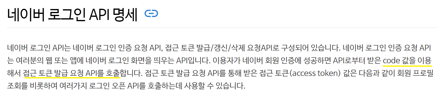 code 값을 이용하여 접근 토큰 발급 요청 API 를 호출 한다고 되어 있다. 이것 역시? 카카오 로그인 구현 할 때 했던 부분이다. 근데 심지어 네이버 너무 친절한게.. 내가 첨부한 페이지인 튜.토.리.얼.. 미쳤음 바로 들어가서 읽다보면 아니.. 이거 그냥 복사해서 붙이면 되는 거아니야... 싶을 정도로 자세하게 우리 네이버 선생님들이 작성 해주셨다.