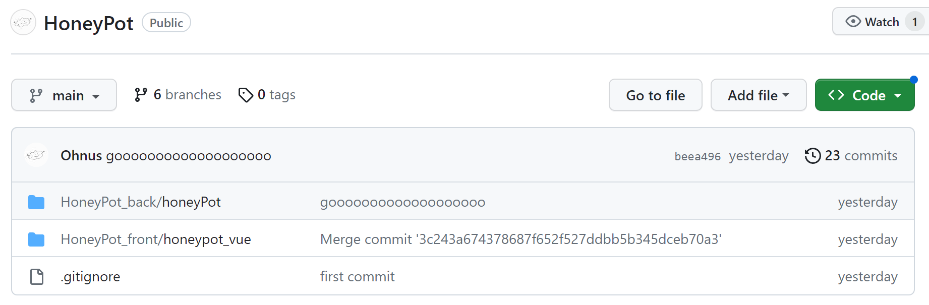 파이널 프로젝트를 하면서 백과 프론트를 분리하여 사용하는데 도대체 깃에는 어떻게 형상관리를 해야 할까? 팀장으로서 걱정이었다. 그러나 아직 깃을 다루는데 익숙하지 않고, 충돌이나 오류를 해결하기에는 실력이 부족한 것 같아 그냥 프론트 따로, 백 따로 나누어 코드 관리를 진행했다. 다행히도 vscode는 따로 merge를 해주지 않아도 되길래 조금 수월했다.