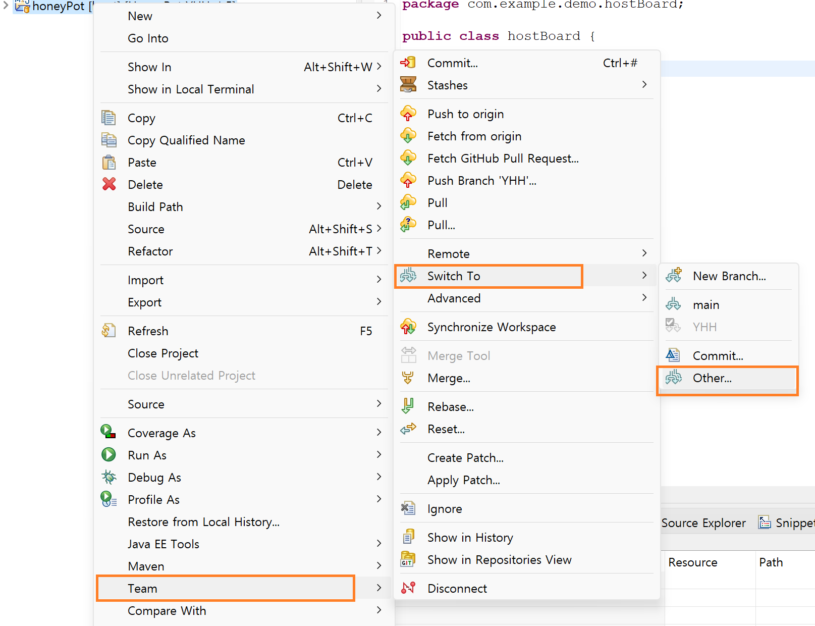 Team -> Switch To -> Other를 누르면