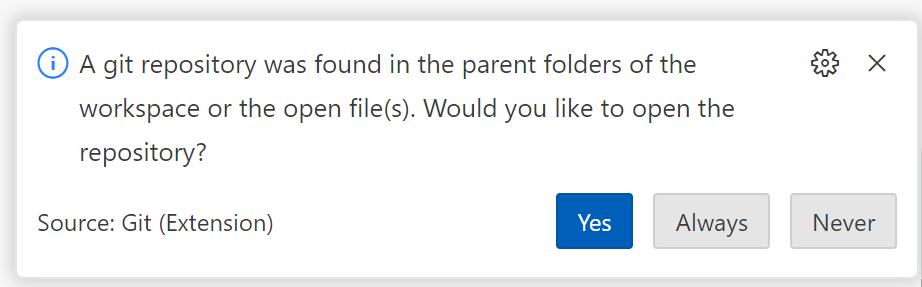 혹시 VScode를하다가 아래와 같은 팝업창이 뜨면 그냥 x 눌러 주면 된다