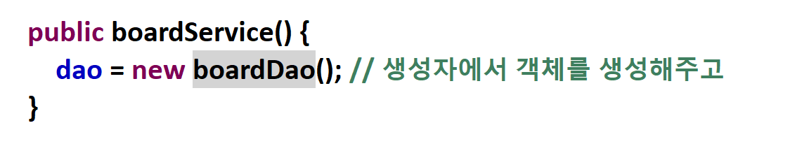 객체를 직접 생성하여 메소드 호출하는 작업을 했고 이 말은 사용자가 직접 작업을 제어하는 구조였다는 뜻이다. 예를 들면, A객체에서 B객체에 있는 메서드를 사용하고 싶다면 B객체를 직접 A객체 내에서 생성하고 메서드를 호출했던 방식이다.