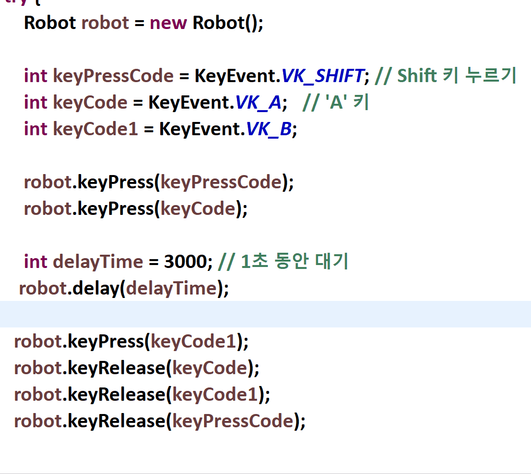 int keyPressCode = KeyEvent.VK_SHIFT; // Shift 키 누르기