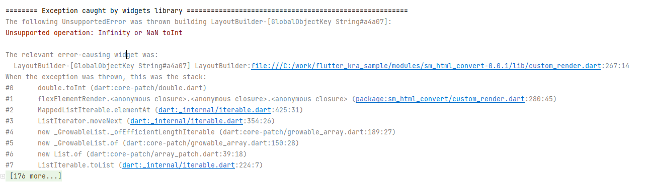 플러터 애플리케이션에서 무한대(Infinity)나 NaN(Not a Number) 값을 정수로 변환하려 할 때 발생.