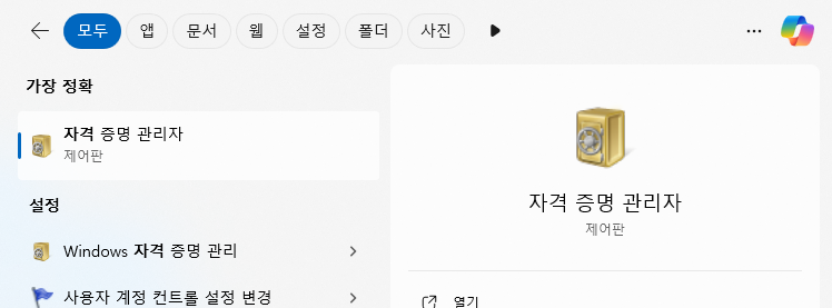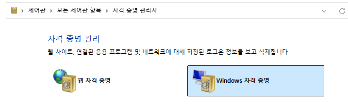 윈도우 검색창에 자격 증명 관리자 검색