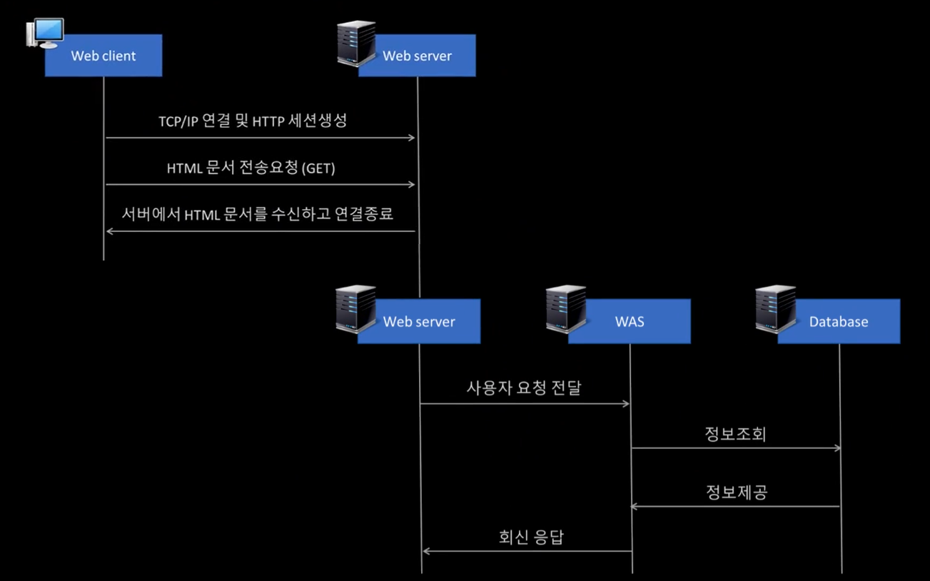 - DB는 WAS와 연결되어 데이터를 가져오거나 업데이트한다.