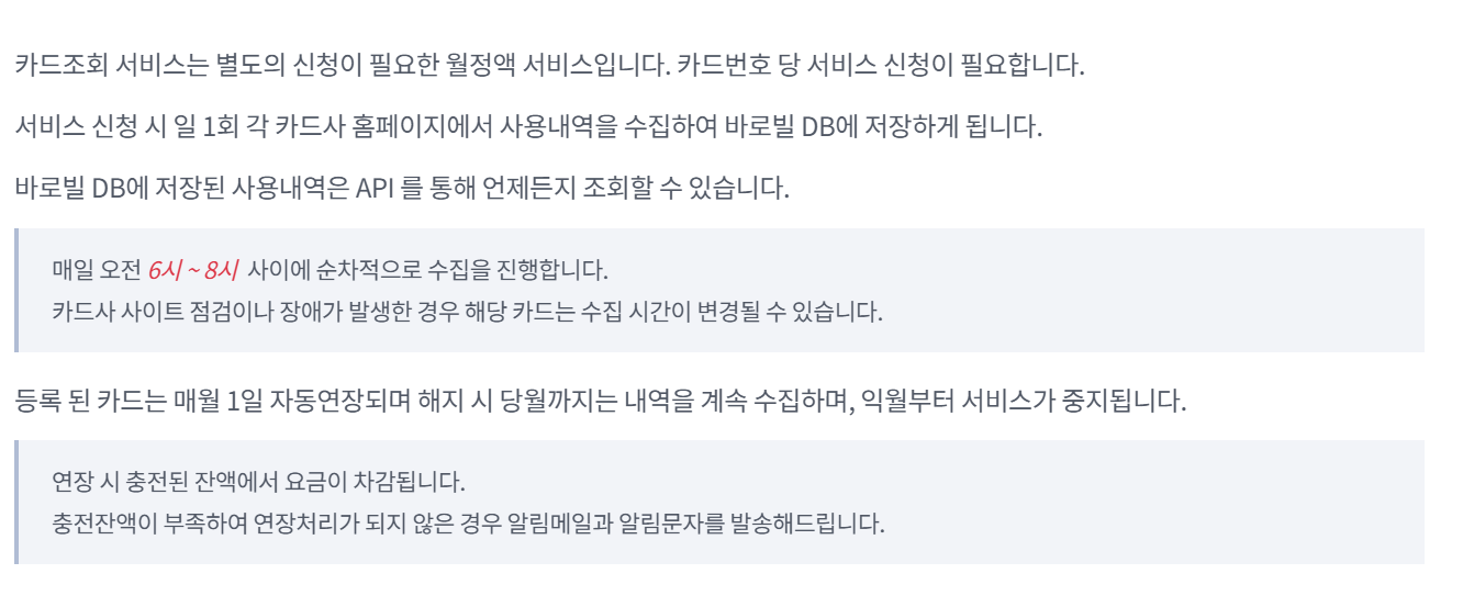 스크래핑 API 레퍼런스 - 카드조회 API | 바로빌 개발자센터