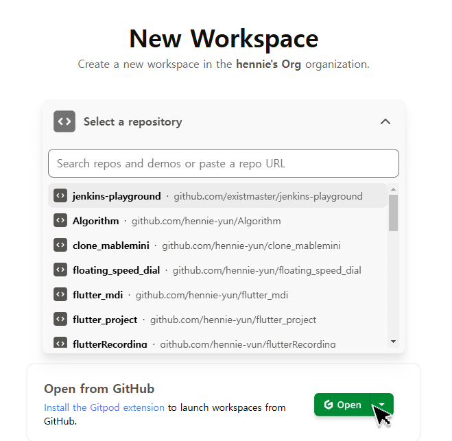 4. 자동으로 내가 가지고 있는 repository를 불러와 준다.