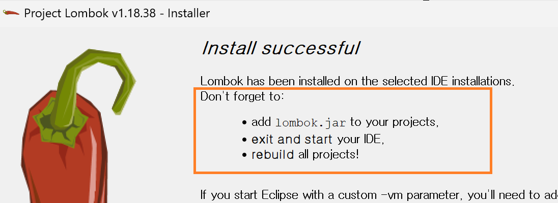 이리저리 찾아보니 롬복을 실제로 다운로드한 후 직접 IDE와 연동시켜줘야 한다는 말이 있었다.
