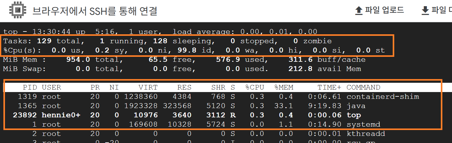 1. SSH에 들어가서 top 명령어 실행