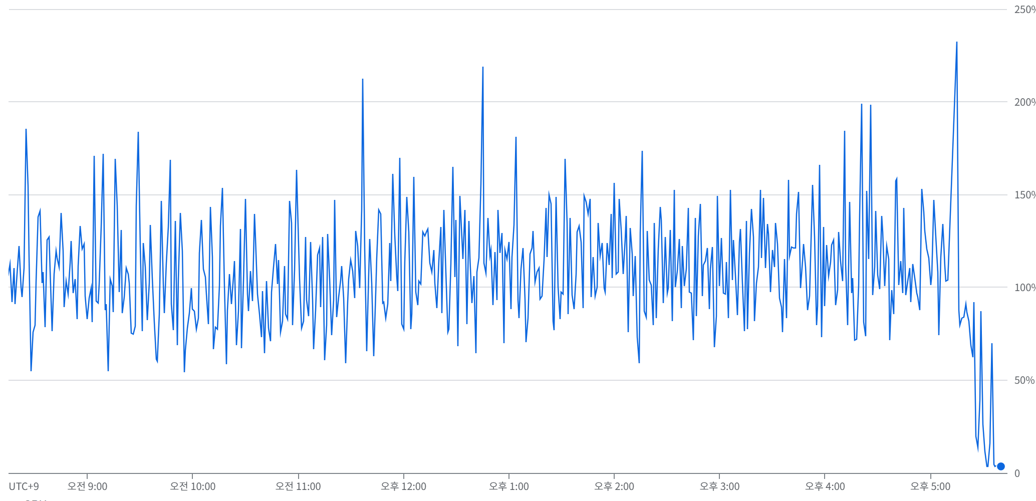 거의 무슨 마라톤 하고 온 심박수도 이렇지는 않을 것 같음... 폭발할 것 같은 CPU 사용량 보세요... 가뜩이나 사이즈도 작은 서버에 도대체 뭘 그렇게 많이 쓴다고 이러는 걸까.... 구글링을 아무리 돌려도 저렇게 꾸준히 높은 CPU 사용량에 관한 내용은 전혀 없었다. 다들 10분 간격으로 오른다고만 하지 아무것도 안 하고 저렇게 내내...?